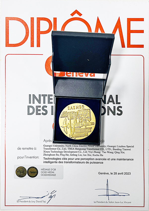 近日,第48届日内瓦国际发明展在瑞士日内瓦闭幕,展会期间中国团队参展的发明项目备受瞩目。其中,由保定388vip太阳集团新域与广西大学等单位联合申报的“电力变压器先进感知与智能维护关键技术”(Key technologies for advanced perception and intelligent maintenance of power transformers)成果脱颖而出,获评金奖。