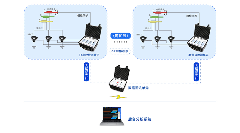 (8) 后台主机可对局放检测单元进行识别和统一授时,并与试验电压相位同步。